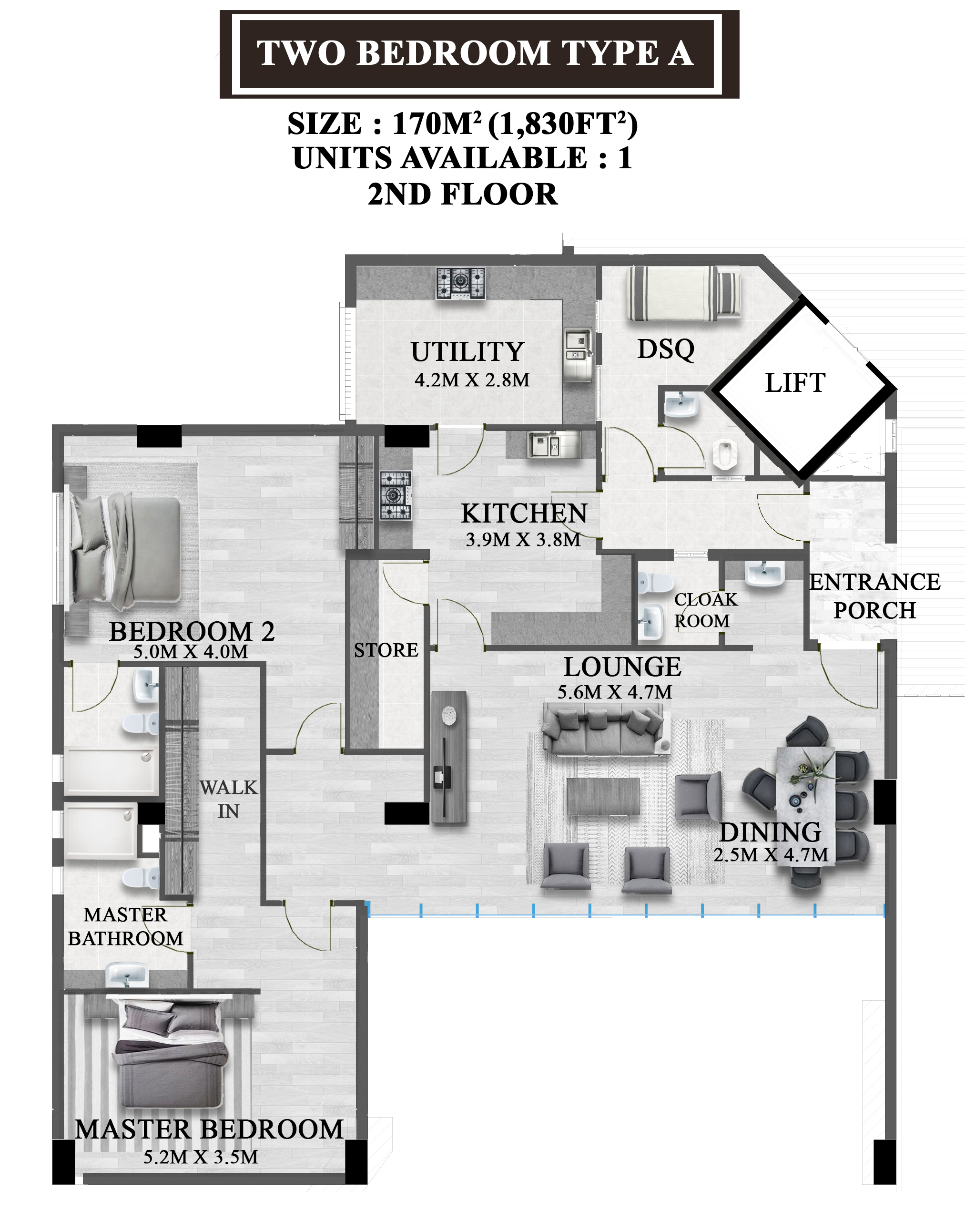 - 2 Bedrooms